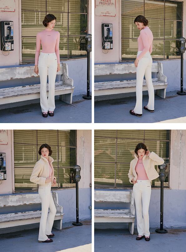 ウエストとヒップを安定感のあるフィット感で支え、裾にかけて自然に広がるラインが脚を長く見せてくれます。
