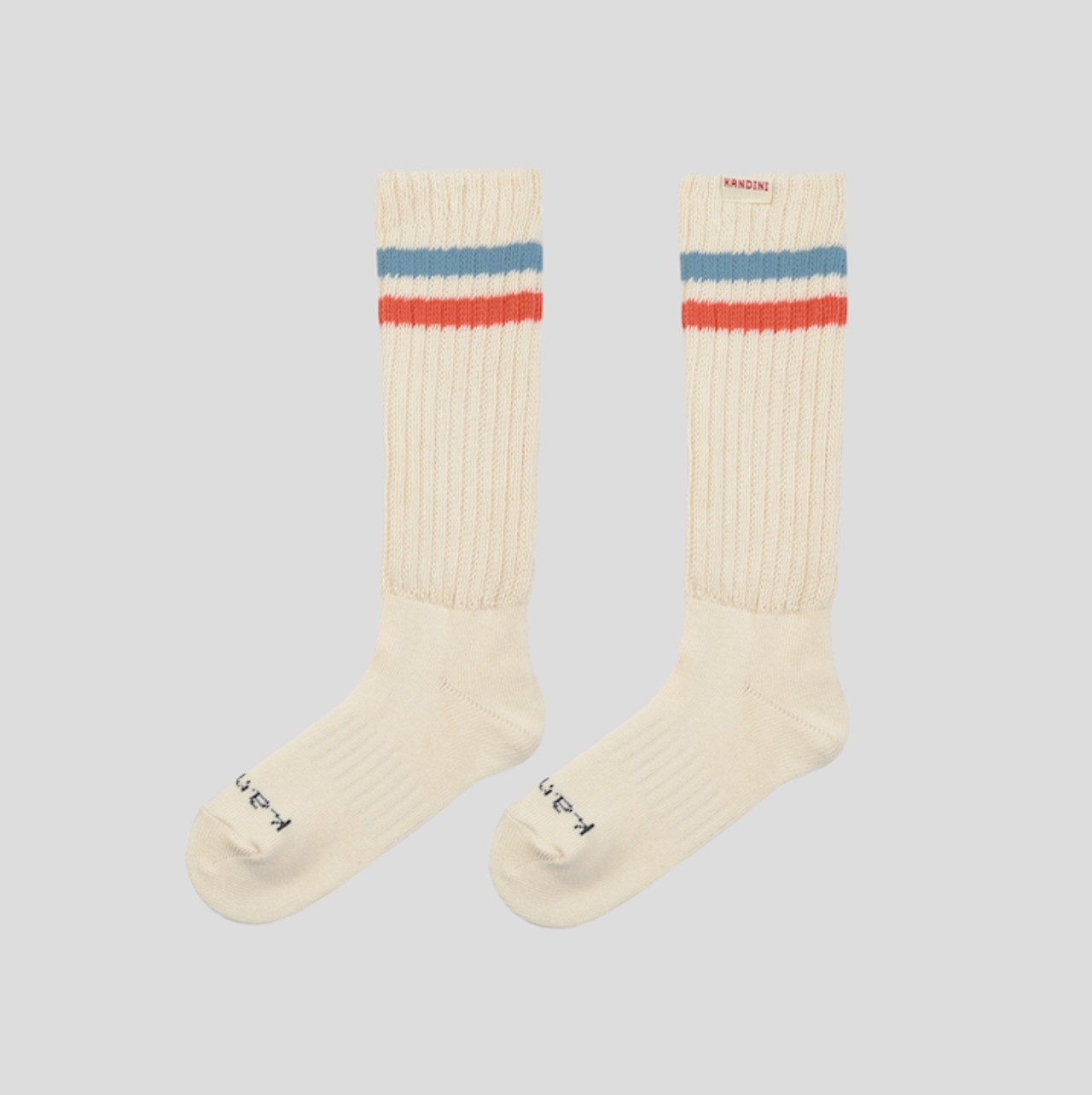 襟元のストライプディテールでレトロなスポーティムードを演出。