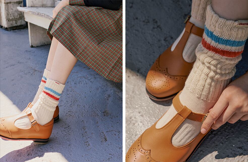 襟元のストライプディテールでレトロなスポーティムードを演出。