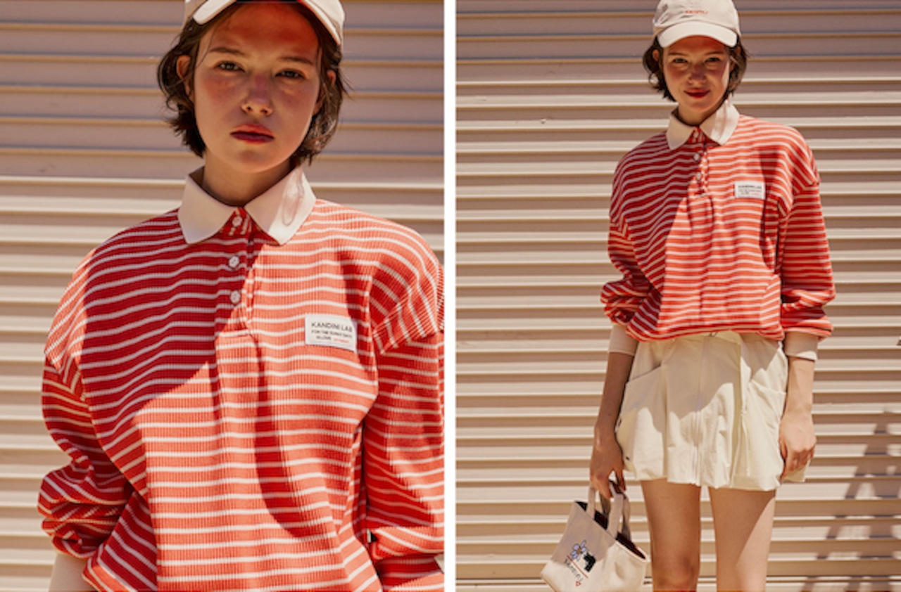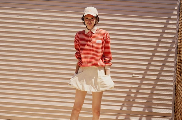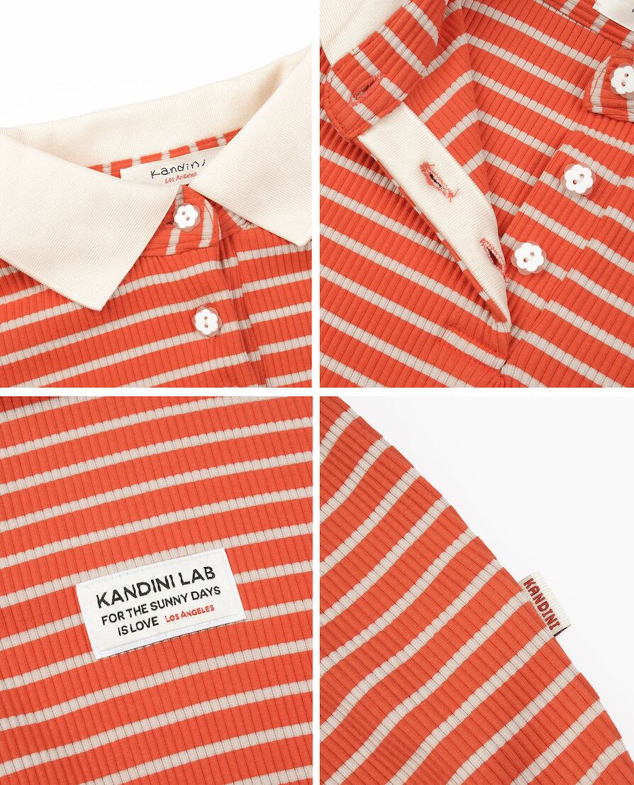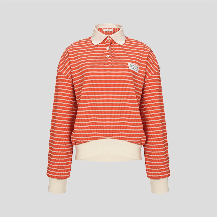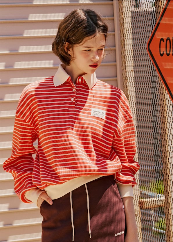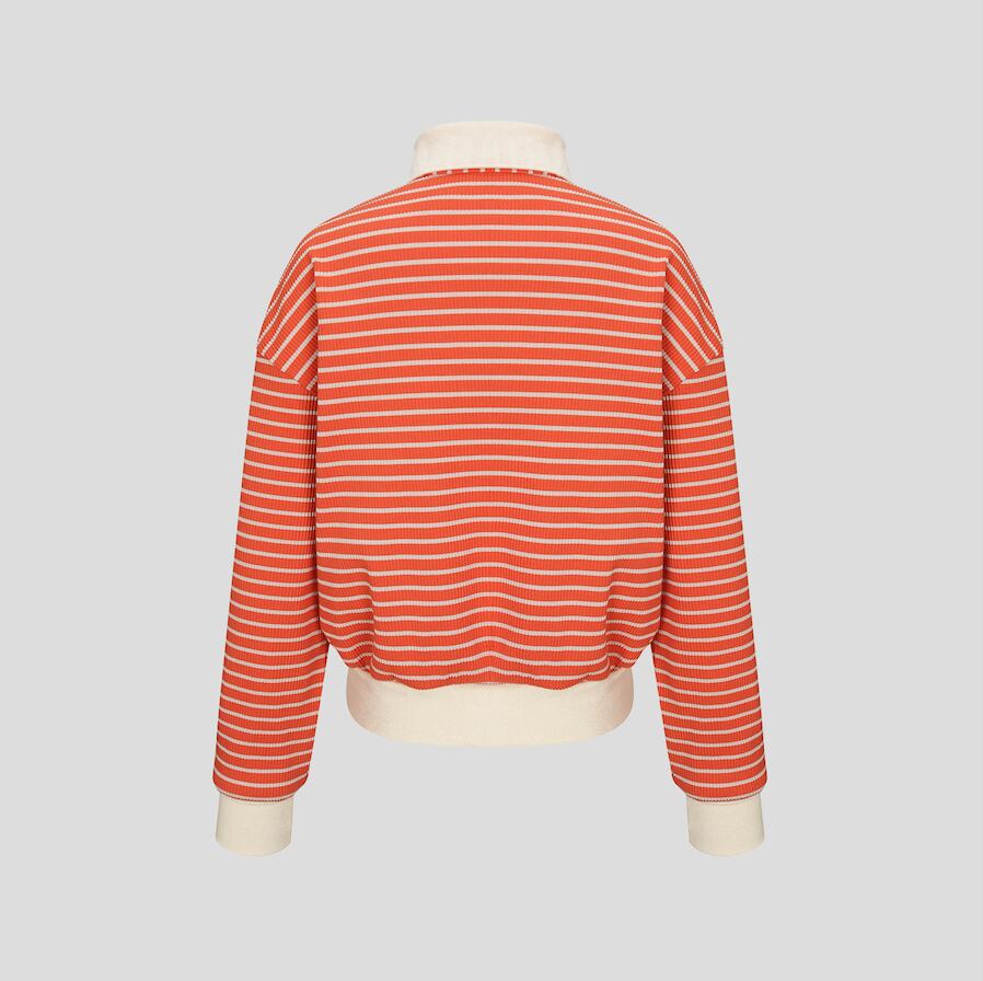 ストライプ柄と白色の襟デザインで、スポーティでカジュアルな雰囲気をプラス。