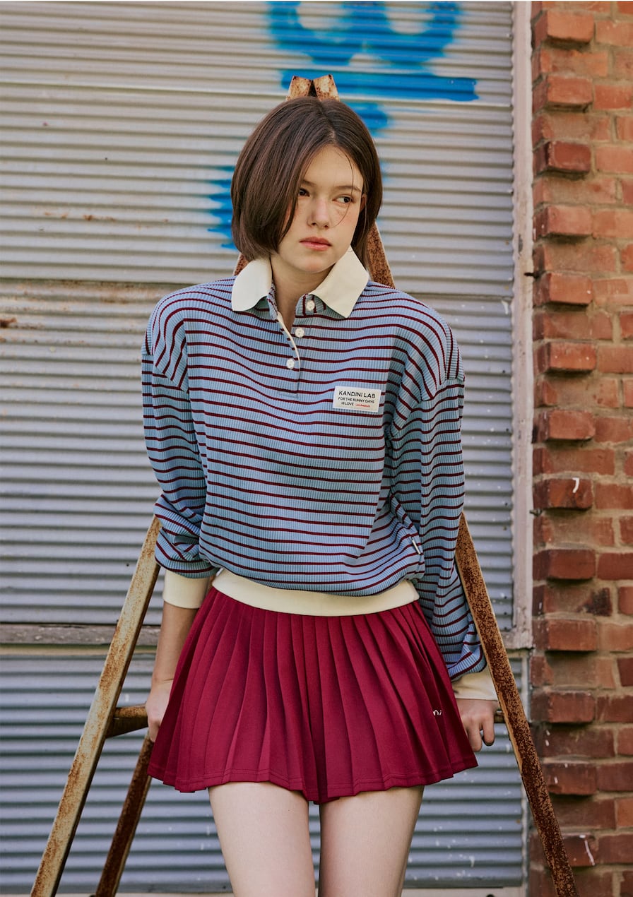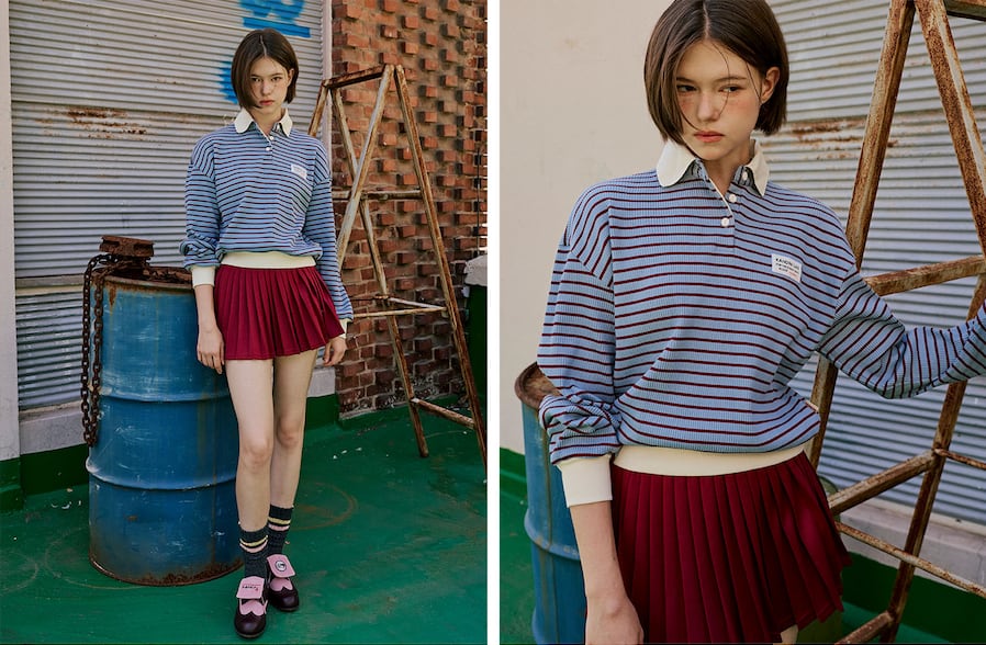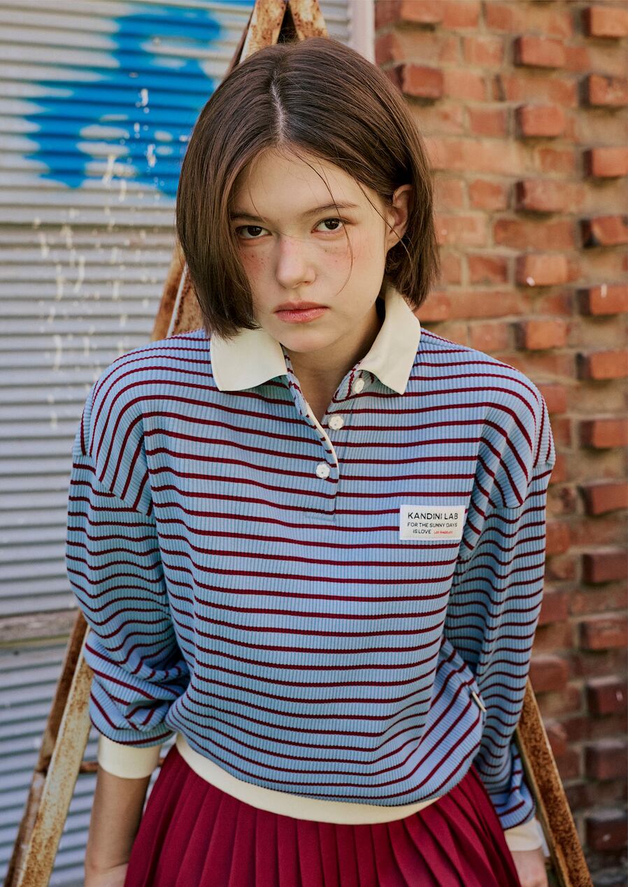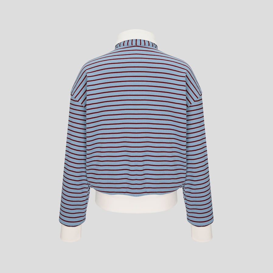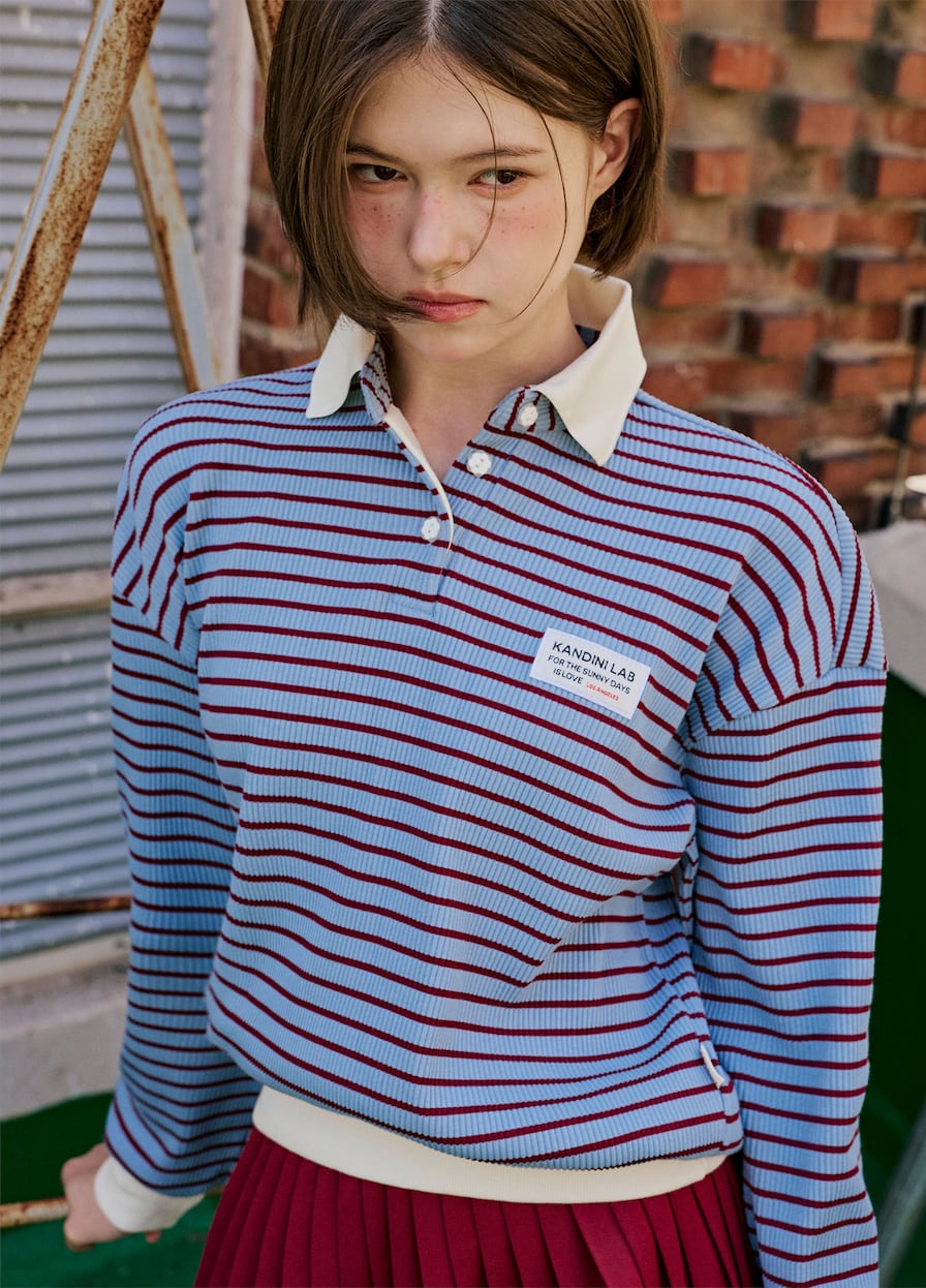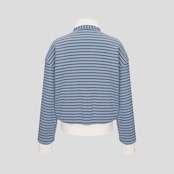 ストライプ柄と白色の襟デザインで、スポーティでカジュアルな雰囲気をプラス。