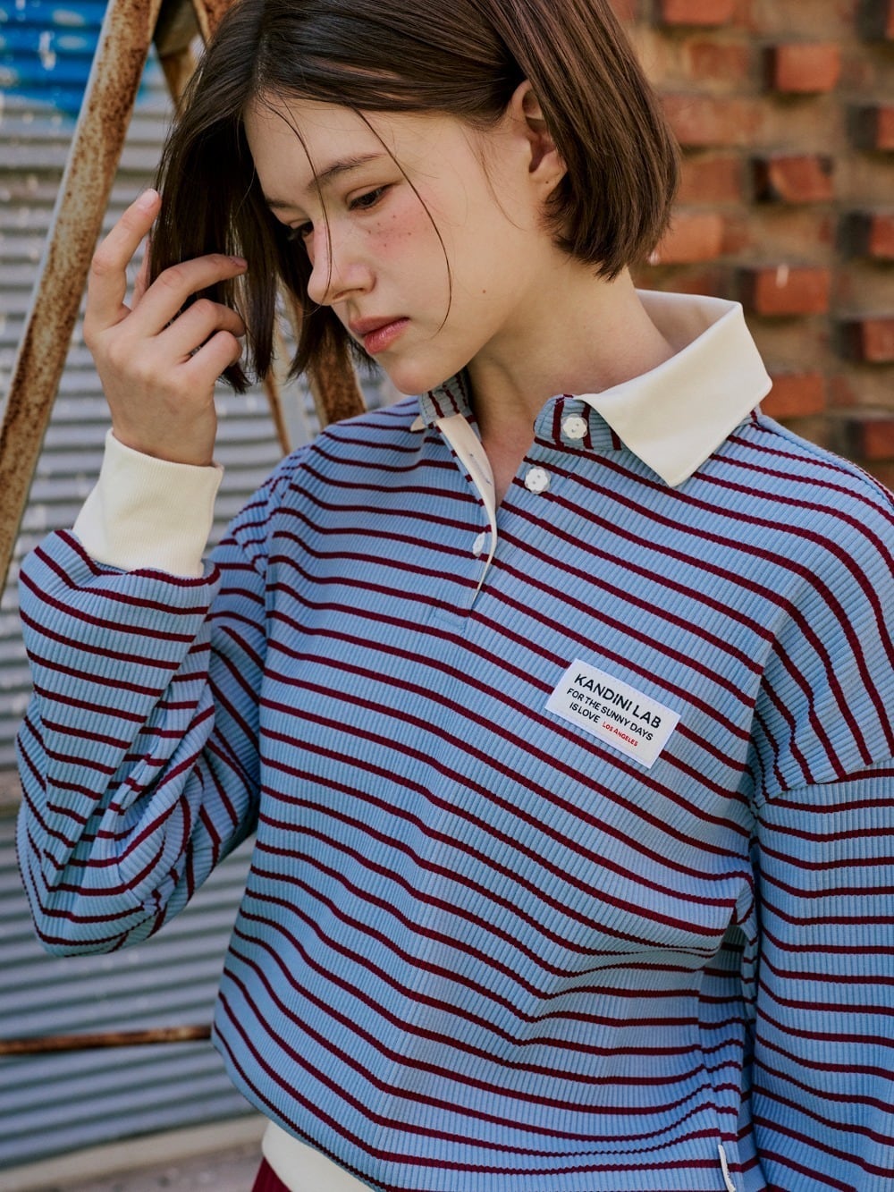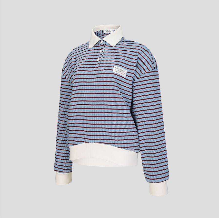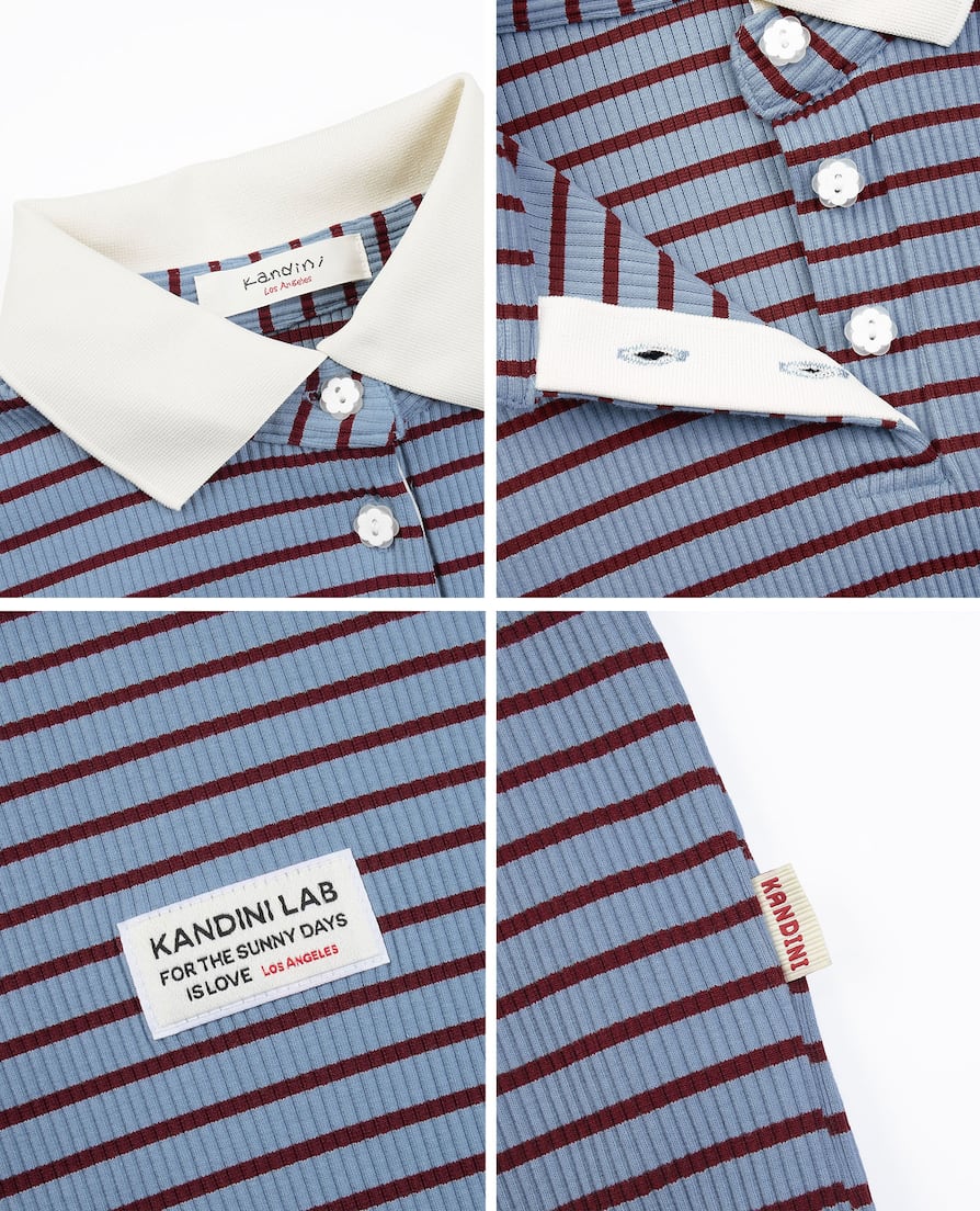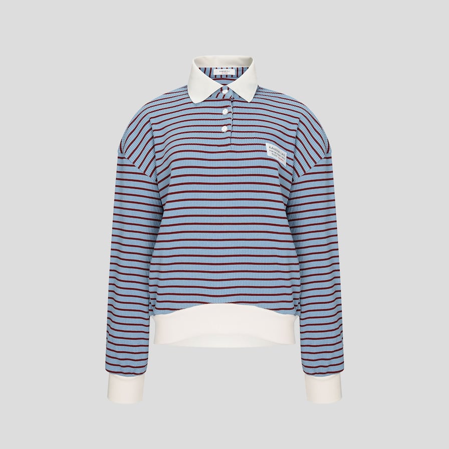 ストライプ柄と白色の襟デザインで、スポーティでカジュアルな雰囲気をプラス。