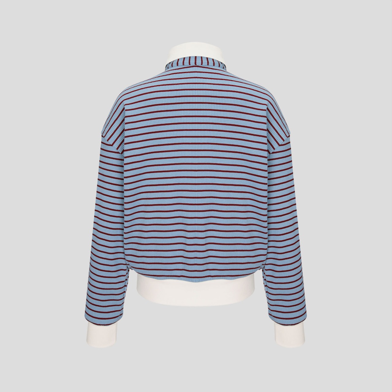 セミオーバーなフィット感のストライプ襟付きロングTシャツ。