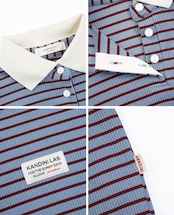 Blue, Ribbed Stripe Polo Top
