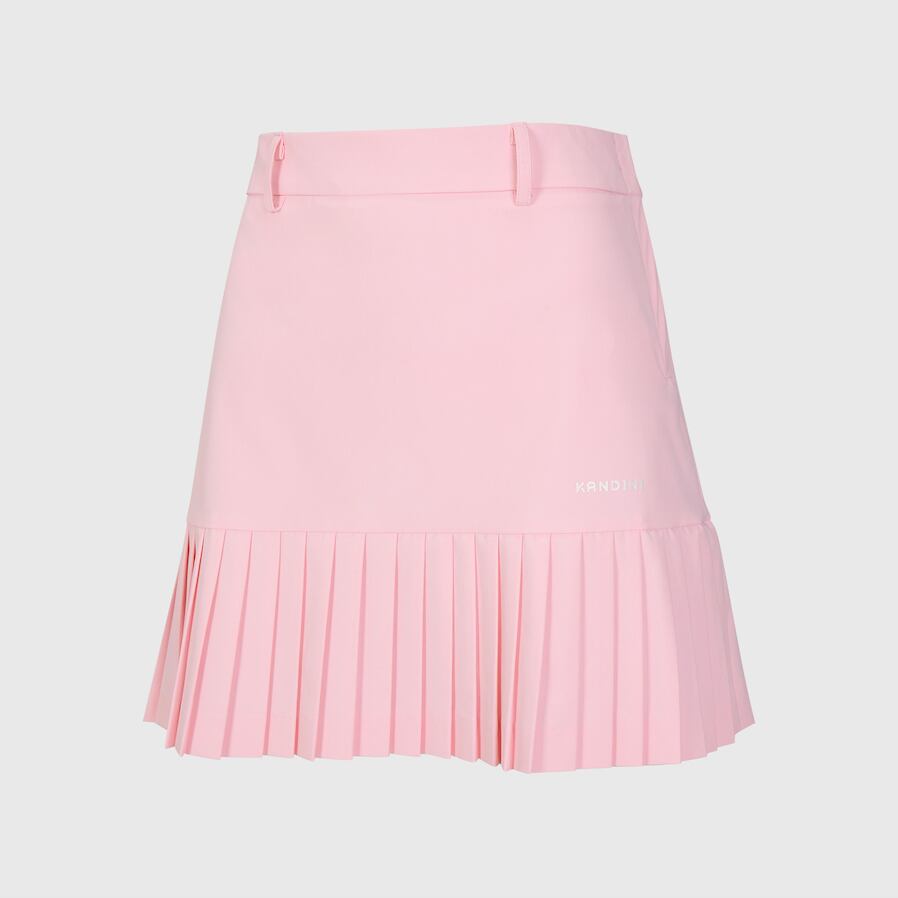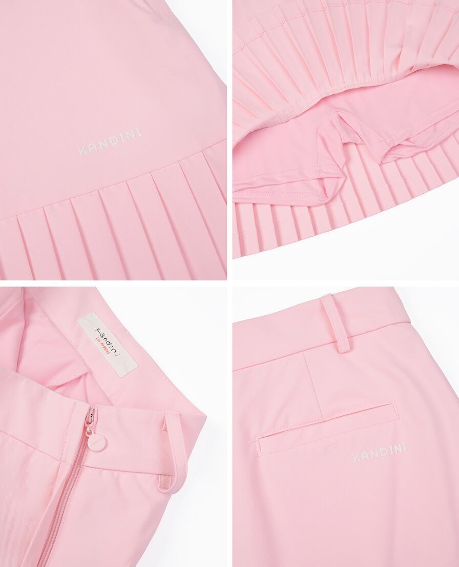 計算された裾のプリーツラインが、スイングのたびに軽やかに揺れ、躍動感をプラス。