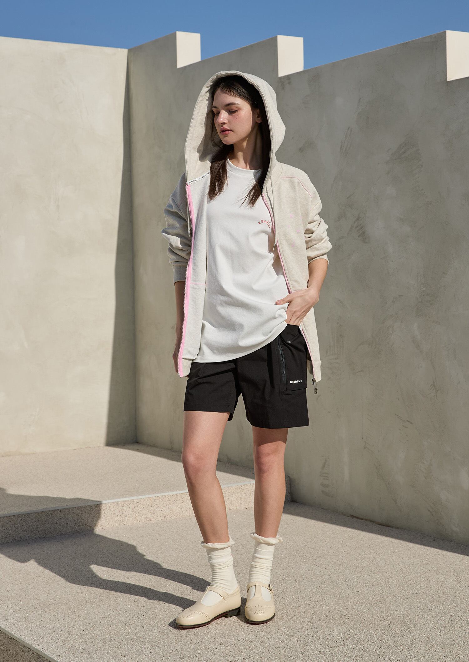 サイドには立体的なポケットとジッパーデザインを配し、デザイン性と収納力を両立。