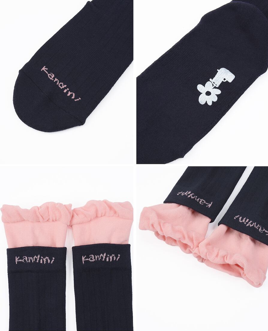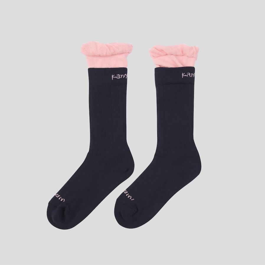Navy, Colorblock Frill Crew Socks