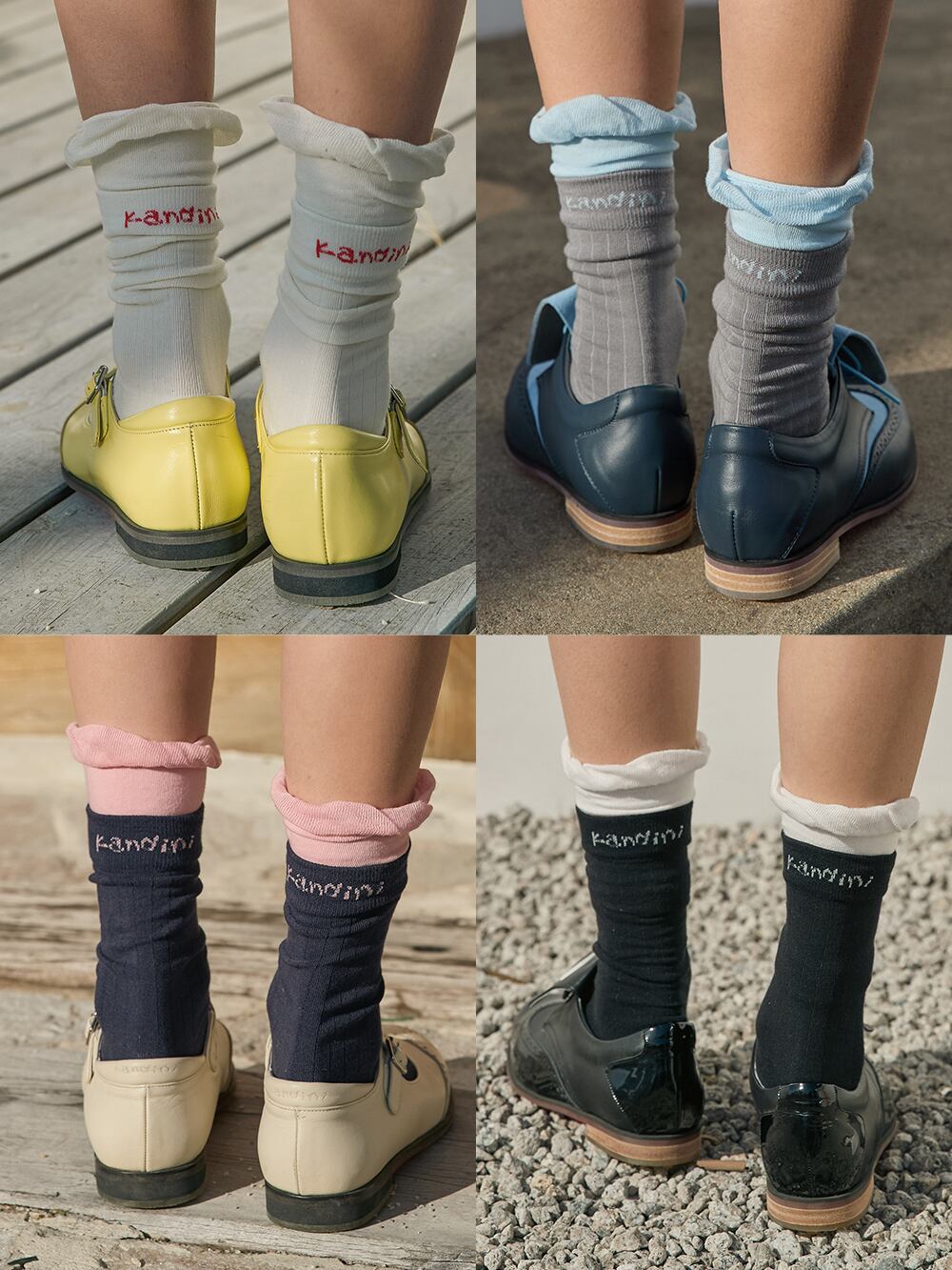 履き口にあしらったフリルディテールが、足元に愛らしいアクセントを添えます。