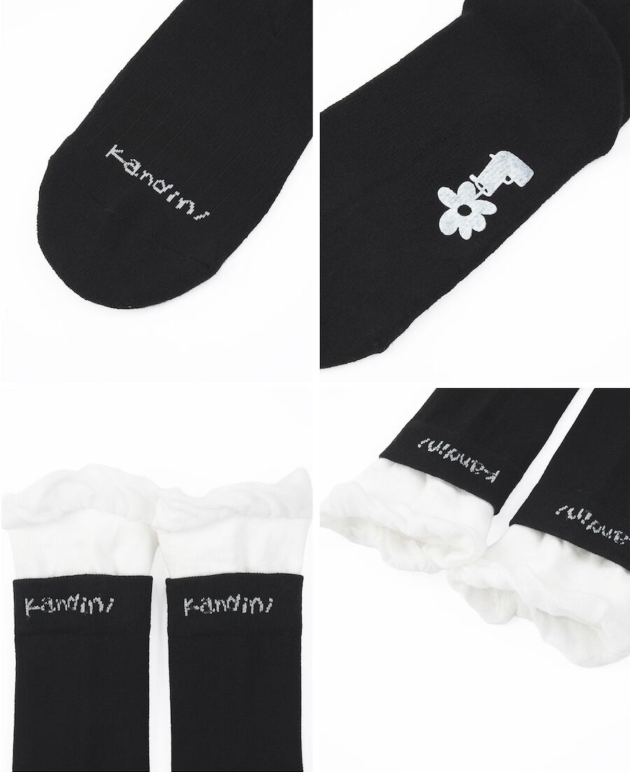 履き口にあしらったフリルディテールが、足元に愛らしいアクセントを添えます。