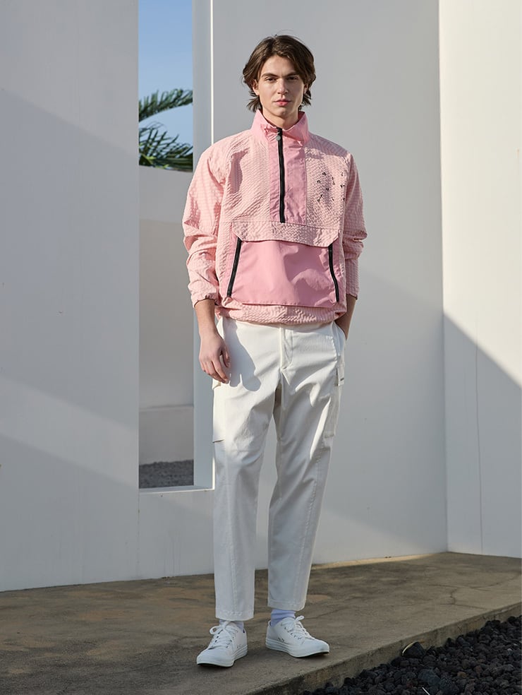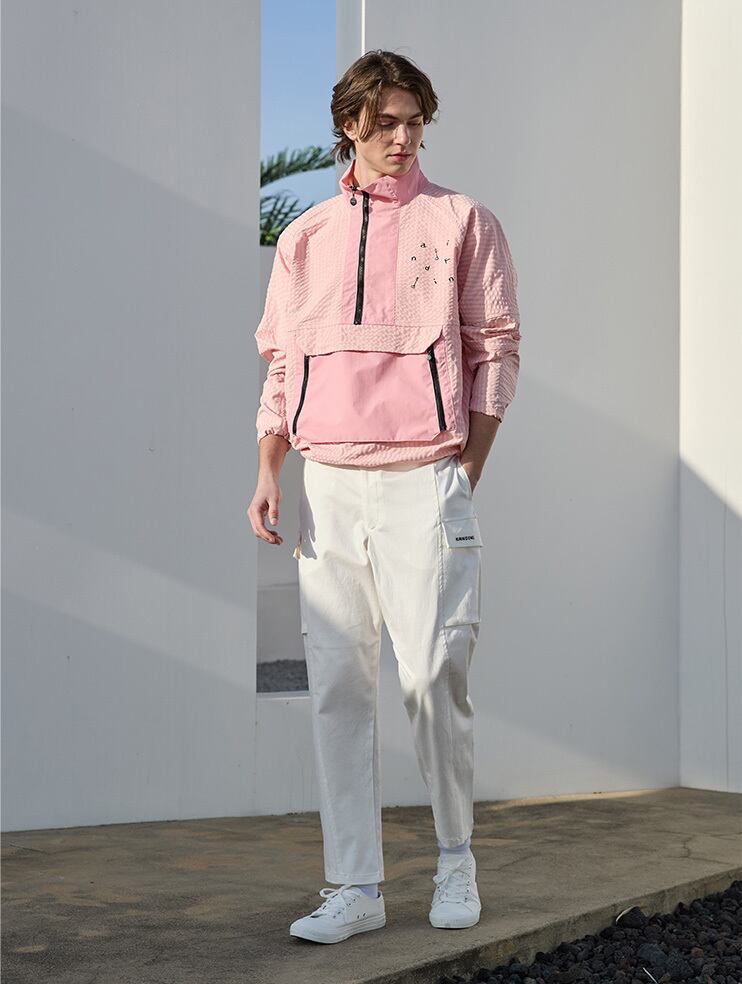 Pink, Colorblock Half-zip Anorak (Unisex)