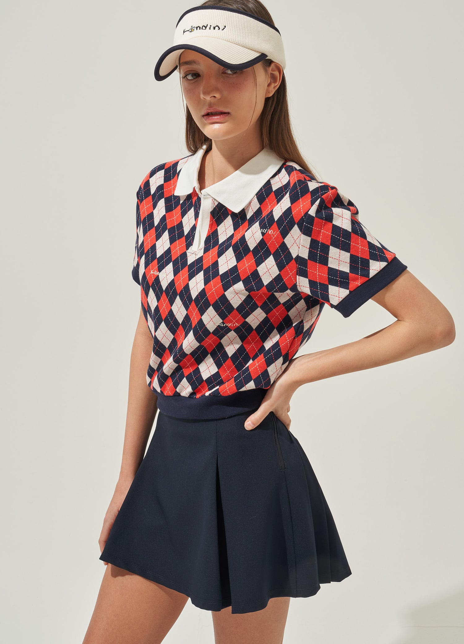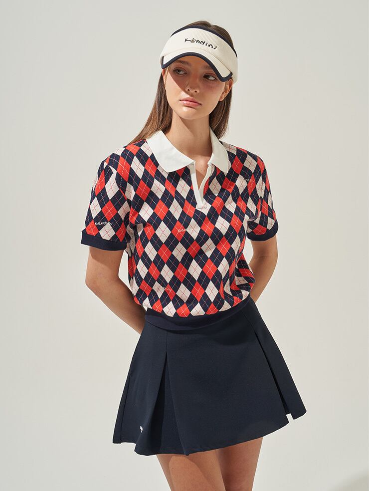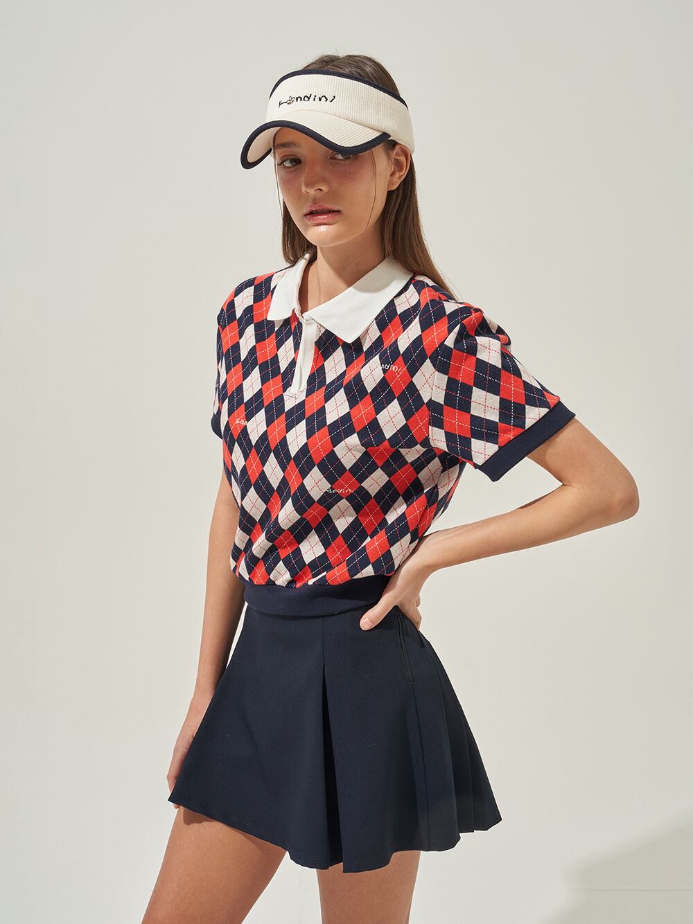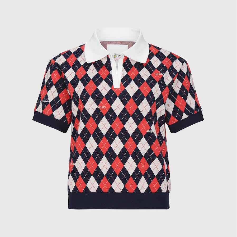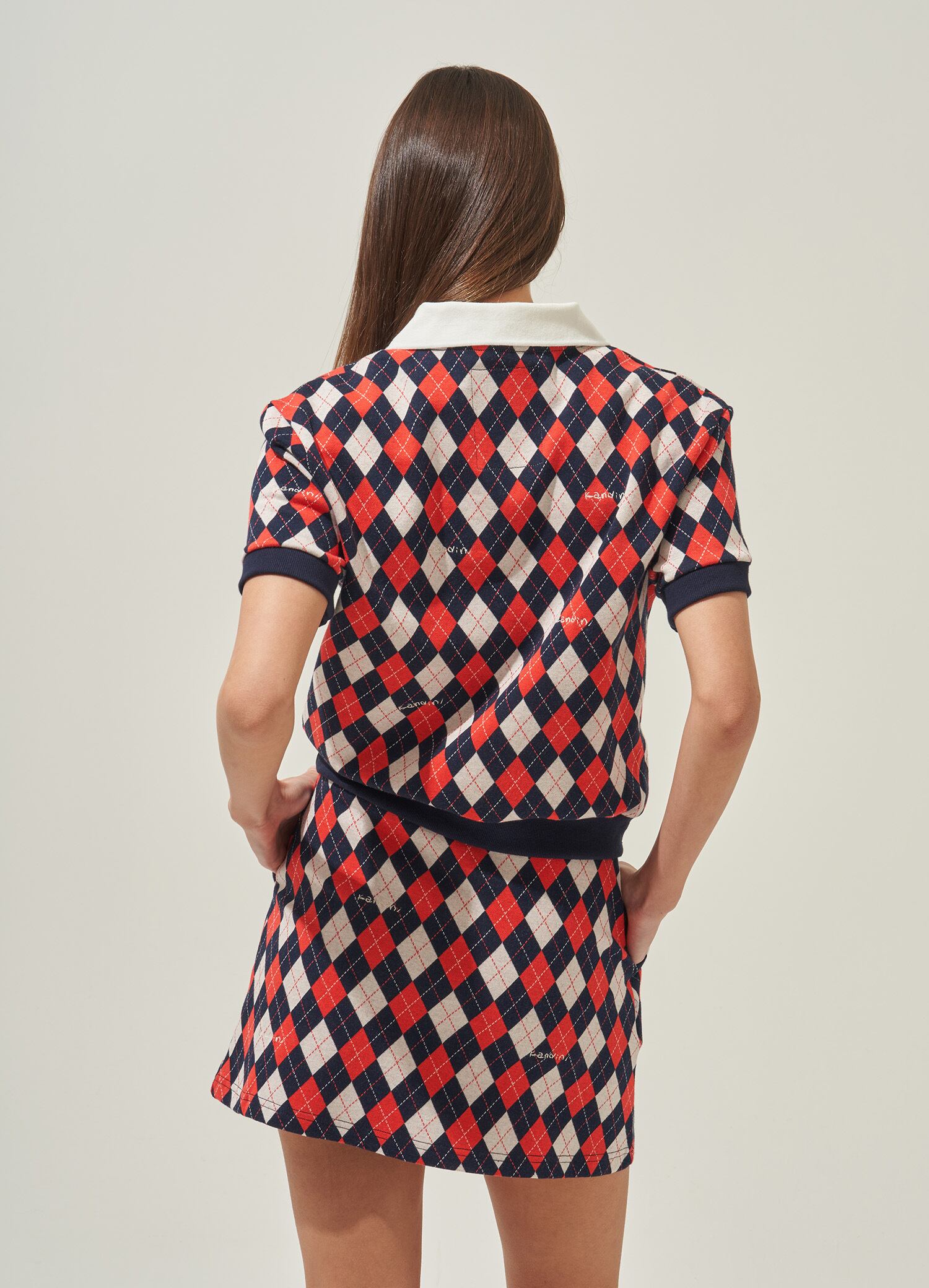 アーガイルチェック柄が目を惹く、ジャガード素材のポロシャツ。