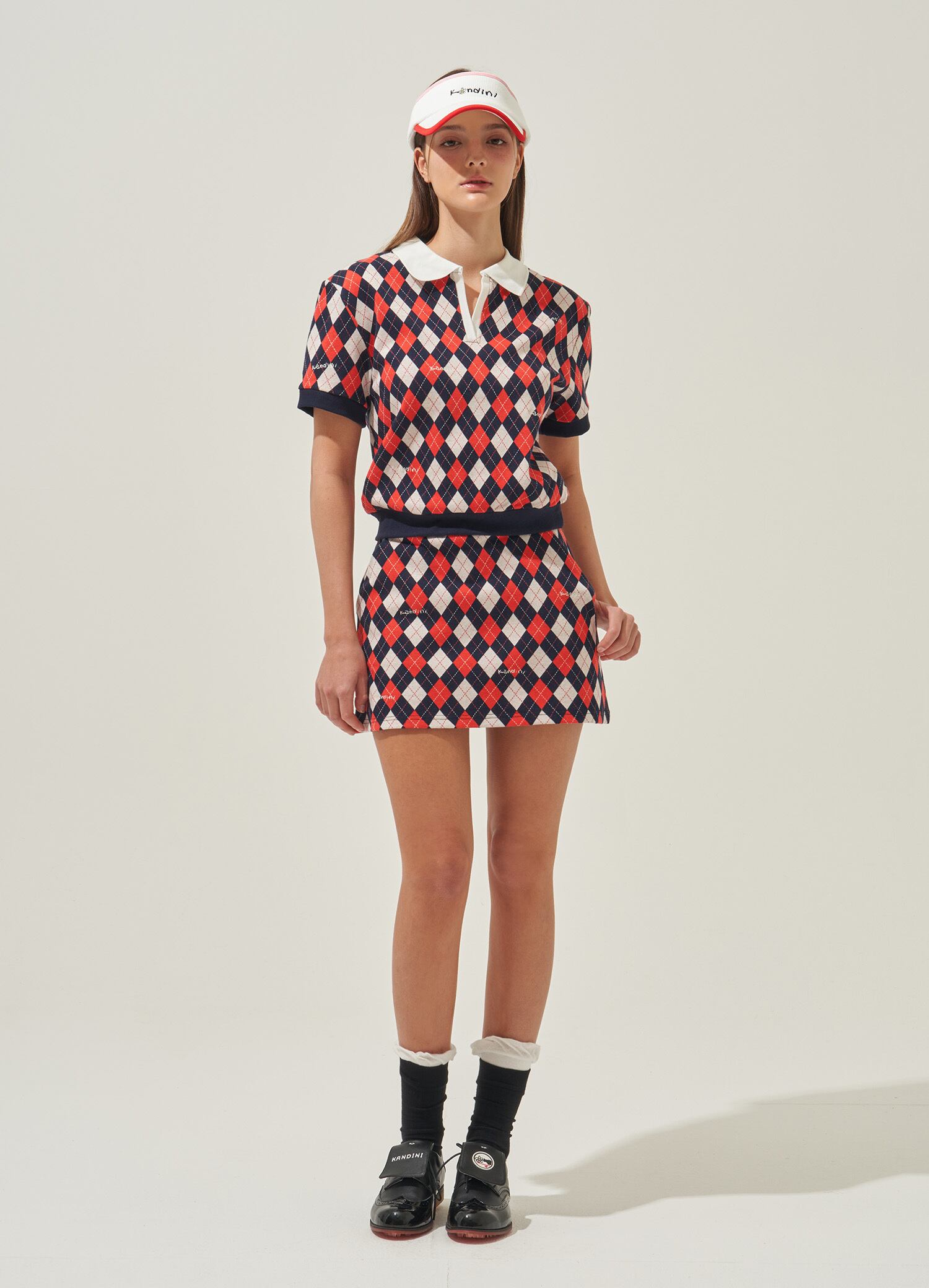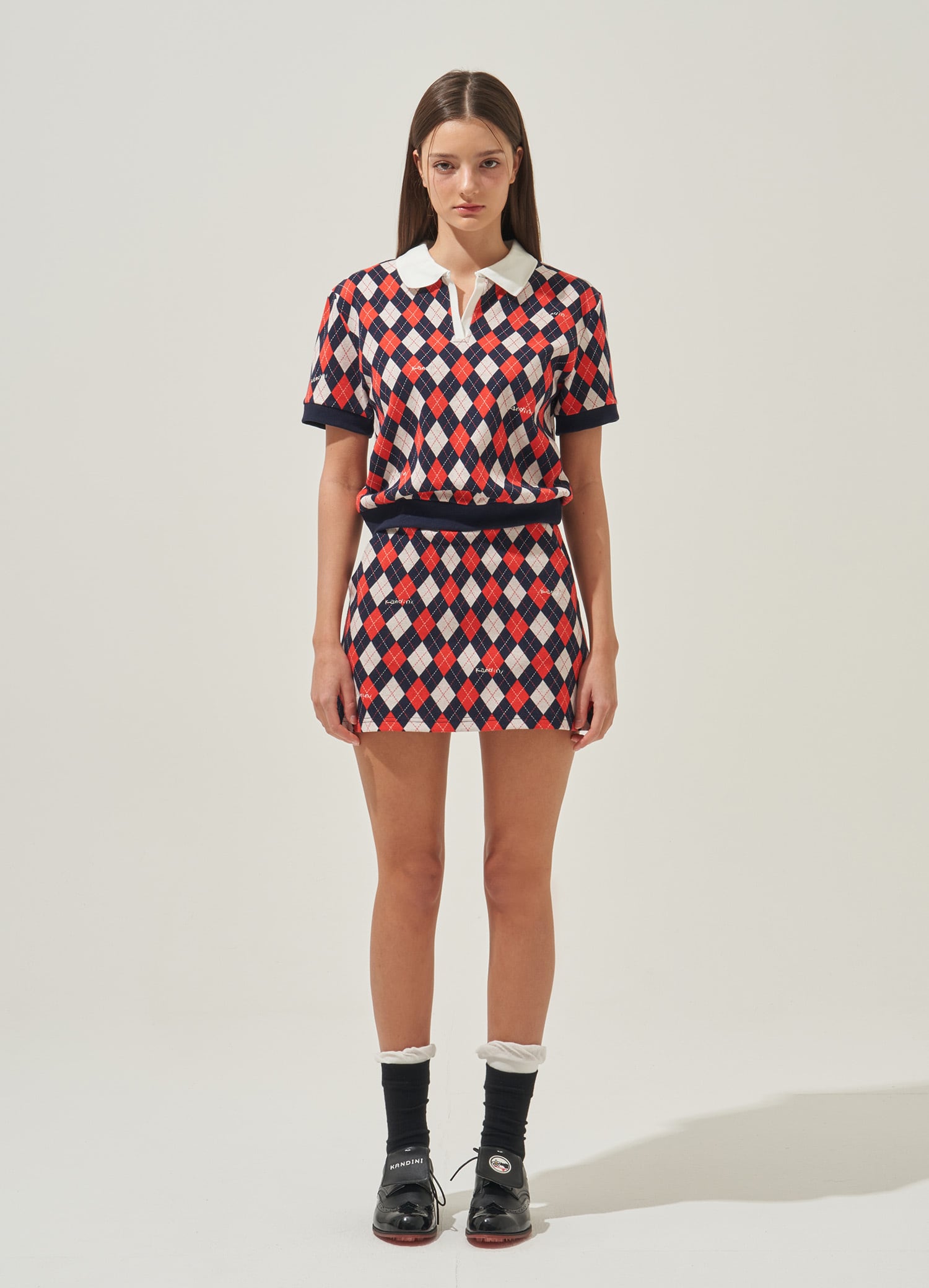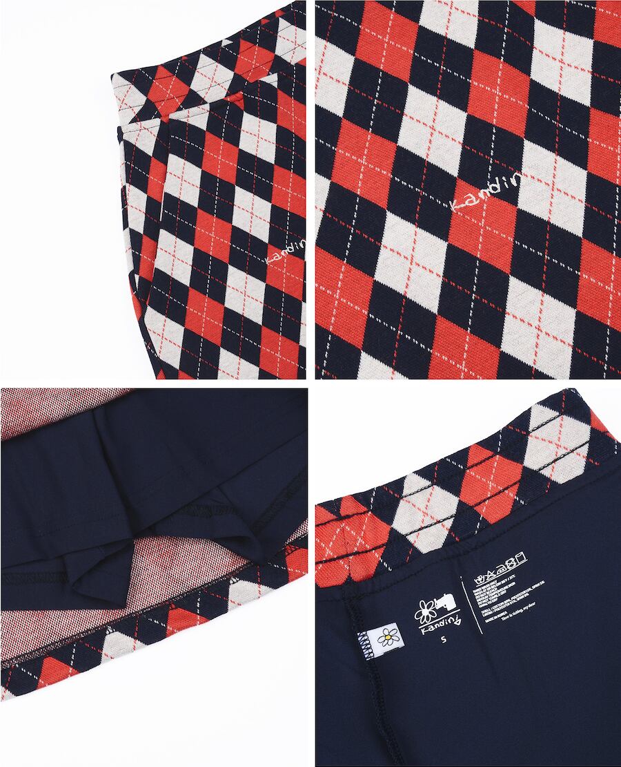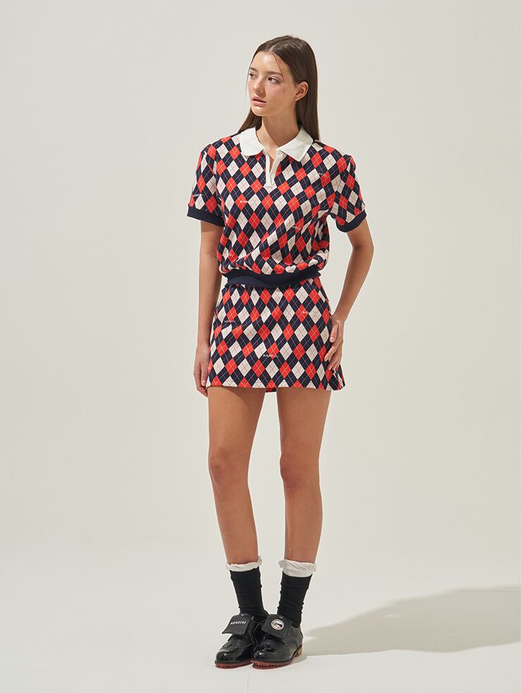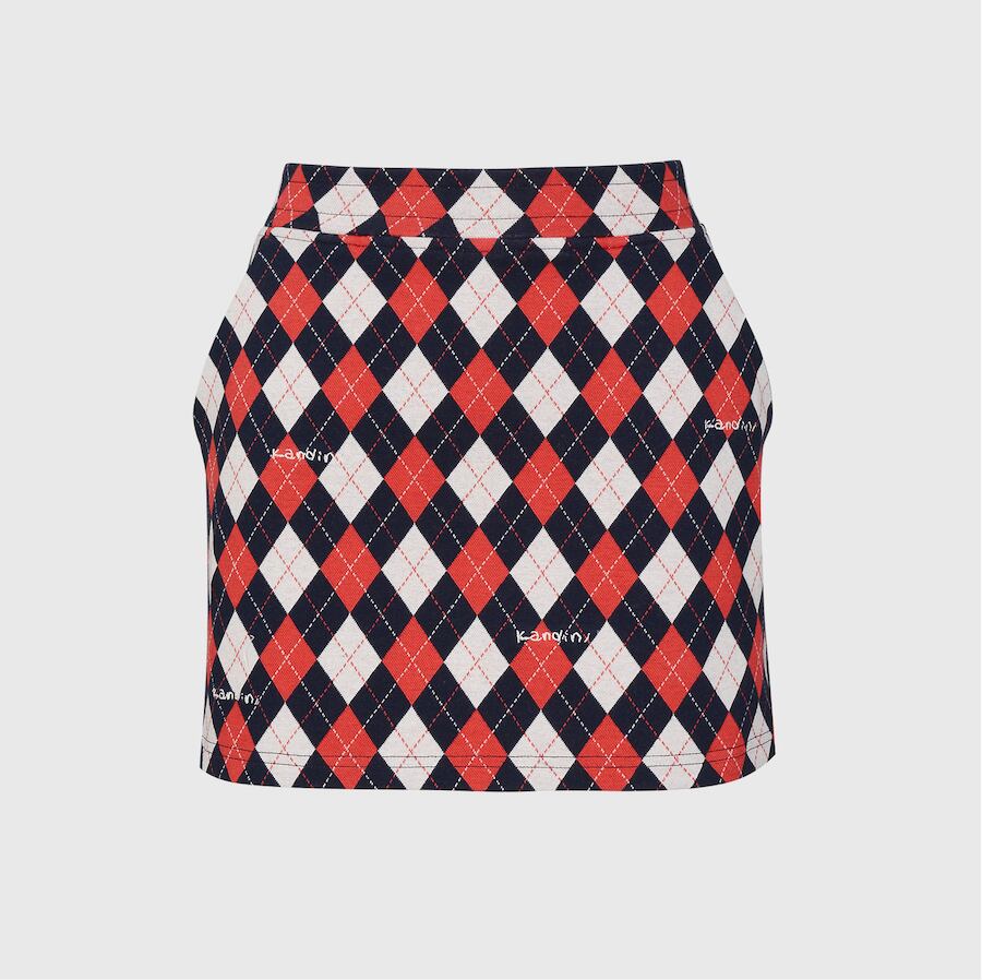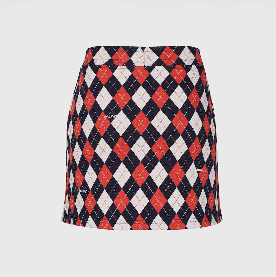 Red/Navy, Argyle Jacquard Skirt
