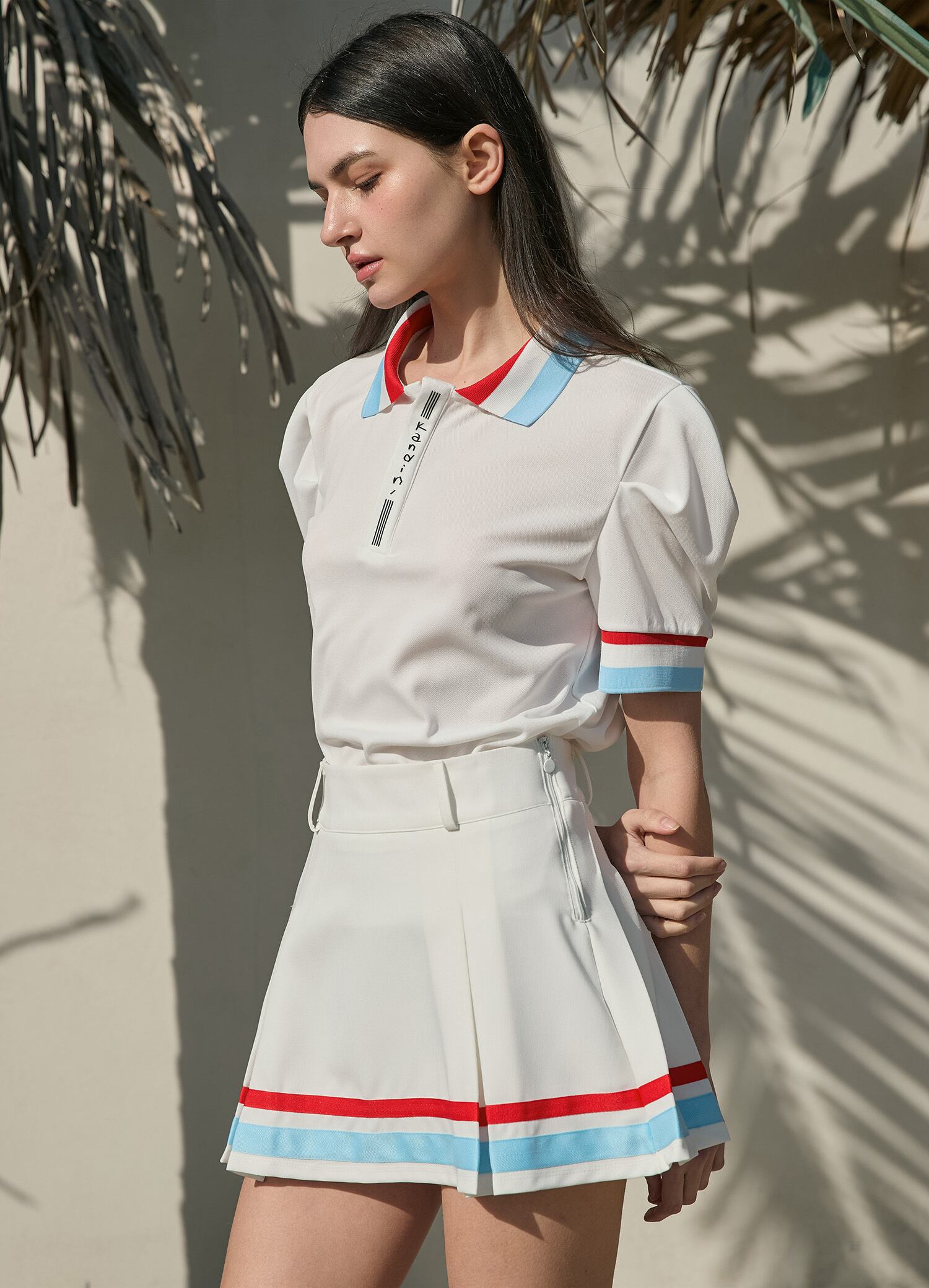 背面のプリーツディテールがウエストラインをすっきりと、ヒップラインをより美しく強調し、フィールド上で軽やかな動きを演出します。