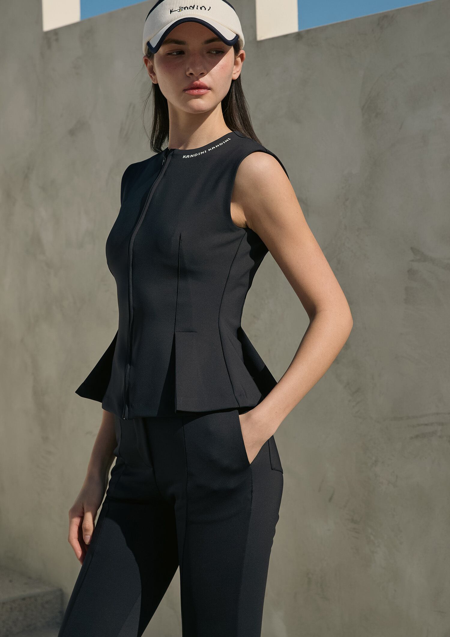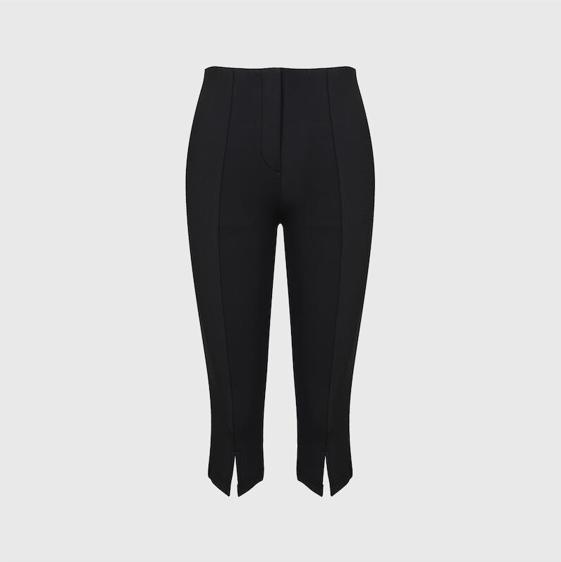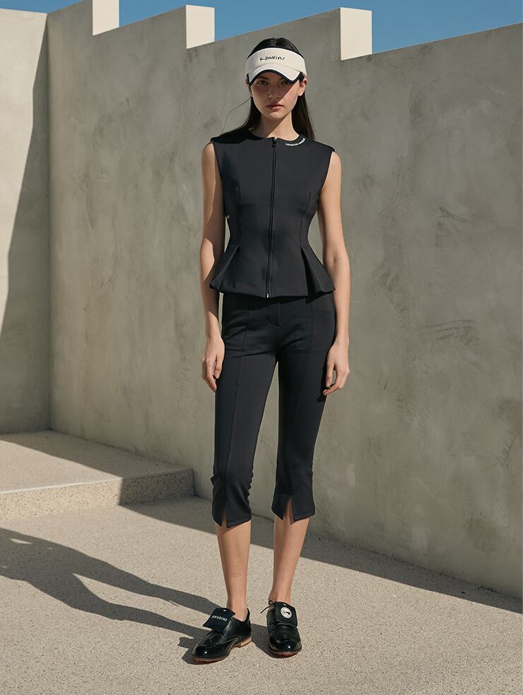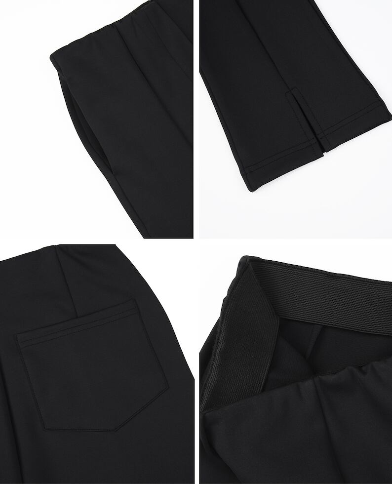 フロントのスリットデザインが足元に軽やかな動きをプラスし、脚のラインをよりスリムに、長く見せてくれます。