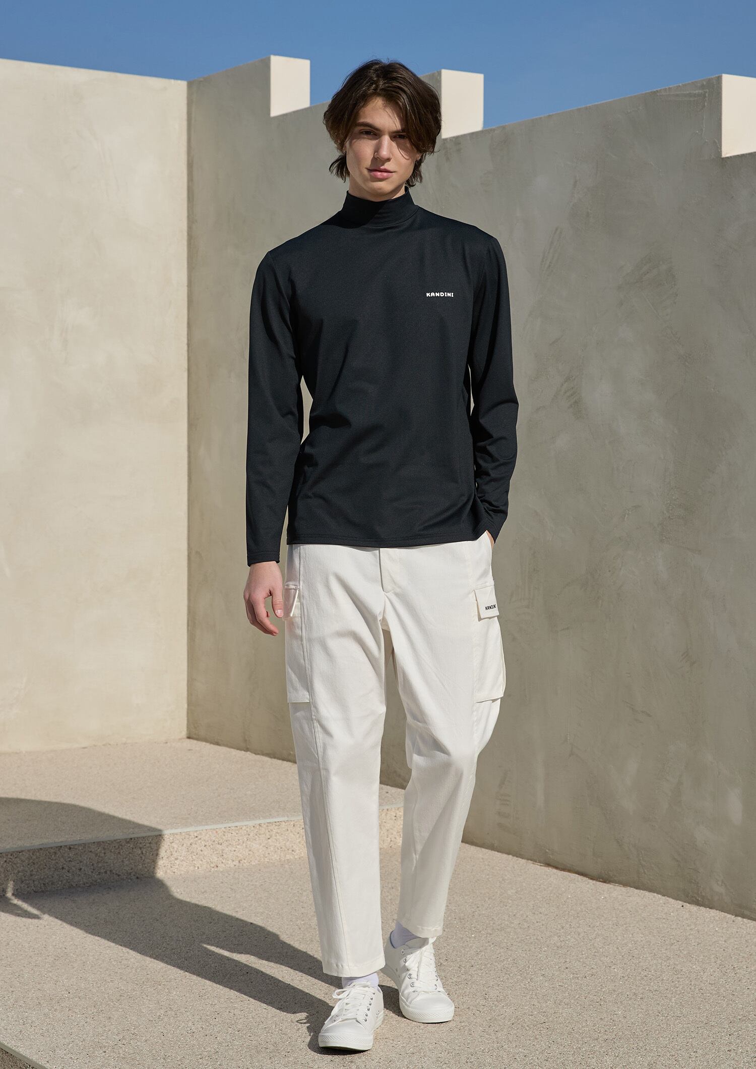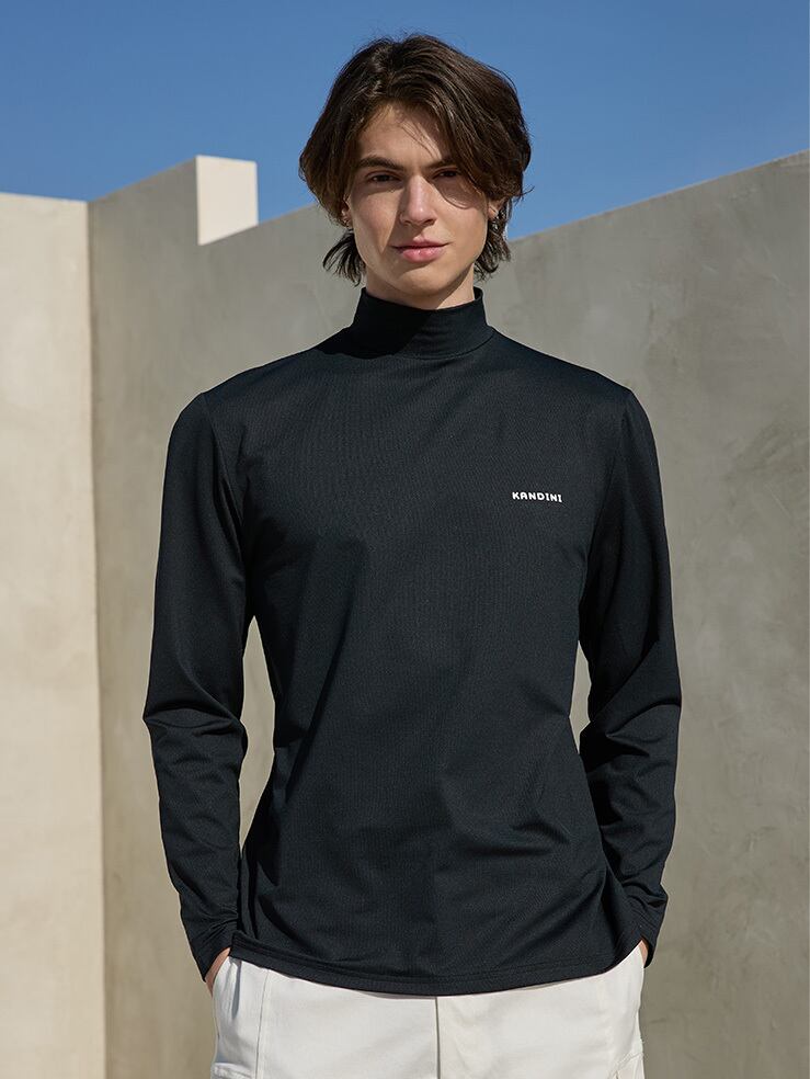 背面のブランドロゴをポイントにした、ゴルフから日常まで幅広く活躍するモックネックトップス。