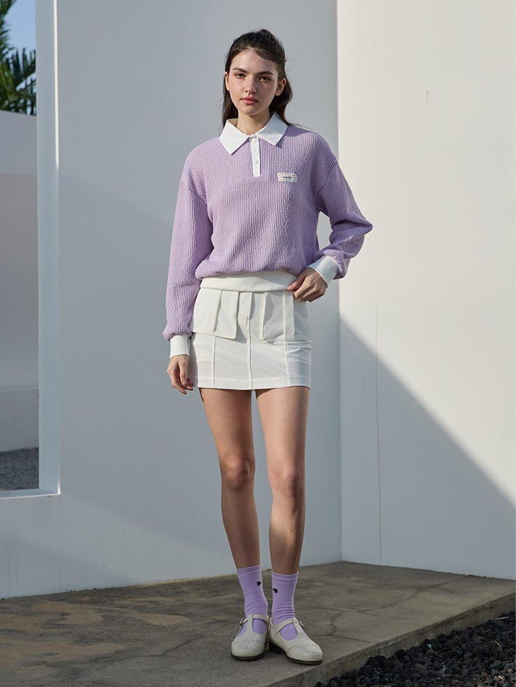 Light Purple, Blossom Collar Knit