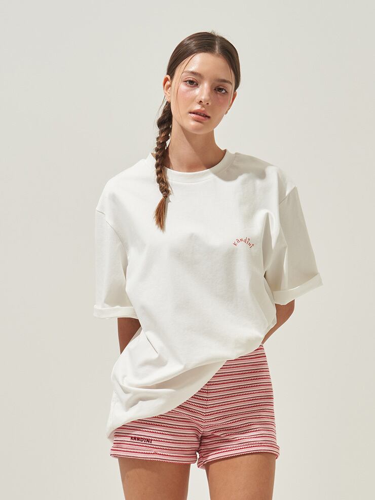 ゆったりとしたシルエットのトップスと、履き心地の良いウエストゴム仕様のショートパンツを組み合わせました。